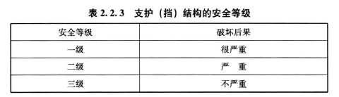 2.2.3 基坑工程、边坡工程设计时,应根据支护(挡)结构破坏可能产生后果(危及人的生命、造成经济损失、对社会或环境产生影响等)的严重性,采用不同的安全等级。支护(挡)结构安全等级的划分应符合表2.2.3的规定。
