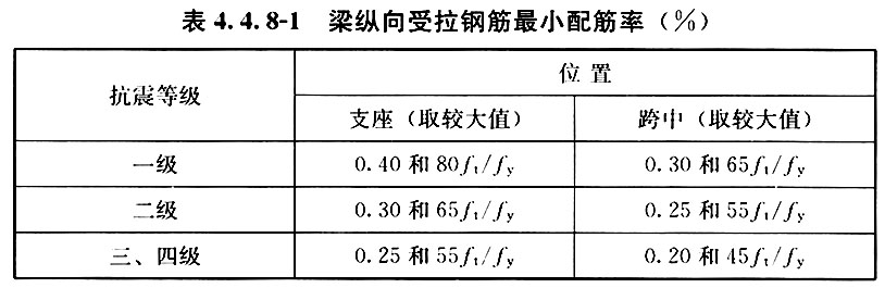 2 纵向受拉钢筋的最小配筋率不应小于表4. 4. 8-1规定的数值。