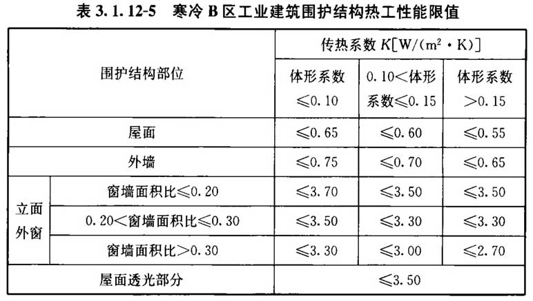3. 1. 12 设置供暖空调系统的工业建筑围护结构热工性能应符合表3. 1. 12-1~表3. 1. 12-9的规定。