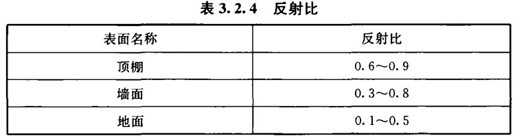 3. 2. 4 长时间工作或学习的场所室内各表面的反射比应符合表3. 2. 4的规定。