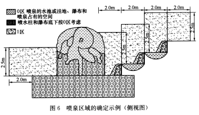 0区:喷水柱、人工瀑布的喷水占有空间及其底下空间。