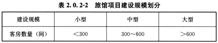 2. 0. 2 宿舍、旅馆项目的建设规模应根据配套需求或市场需求,以及投资条件等确定。宿舍项目建设规模划分应符合表2. 0. 2-1的规定,旅馆项目建设规模划分应符合表2. 0. 2-2的规定。