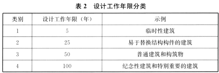 2. 2. 2 民用建筑结构的设计工作年限见表2。