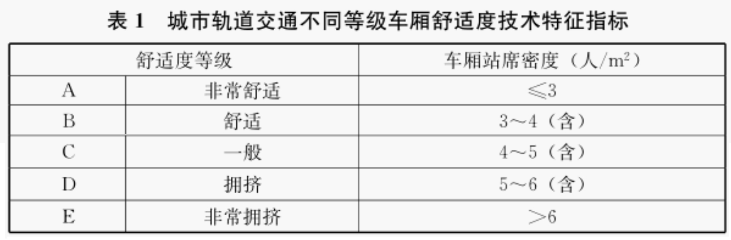 服务水平主要体现在时效性、便捷性和舒适性等方面。车厢舒适度技术特征指标见表1。