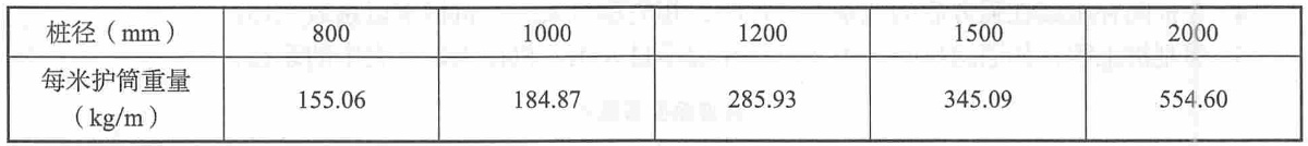 十五、桩钢护筒的工程量按护筒的设计质量计算。设计质量为加工后的成品质量,包括加劲肋及连接件质量等全部钢材质量。当设计未能提供质量时,可参考下面的质量表进行计算,桩径不同时可按内插法计算。