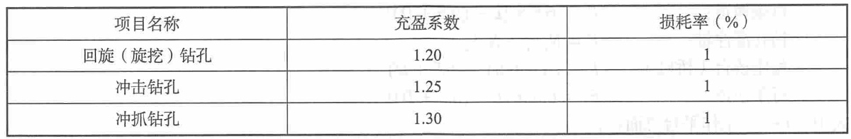 十八、灌注桩混凝土均按水下混凝土导管倾注考虑,采用非水下混凝土时混凝土材料可抽换。项目已包括设备(如导管等)摊销,混凝土用量中均已包括了充盈系数和材料损耗(见下表),不得另行计算。